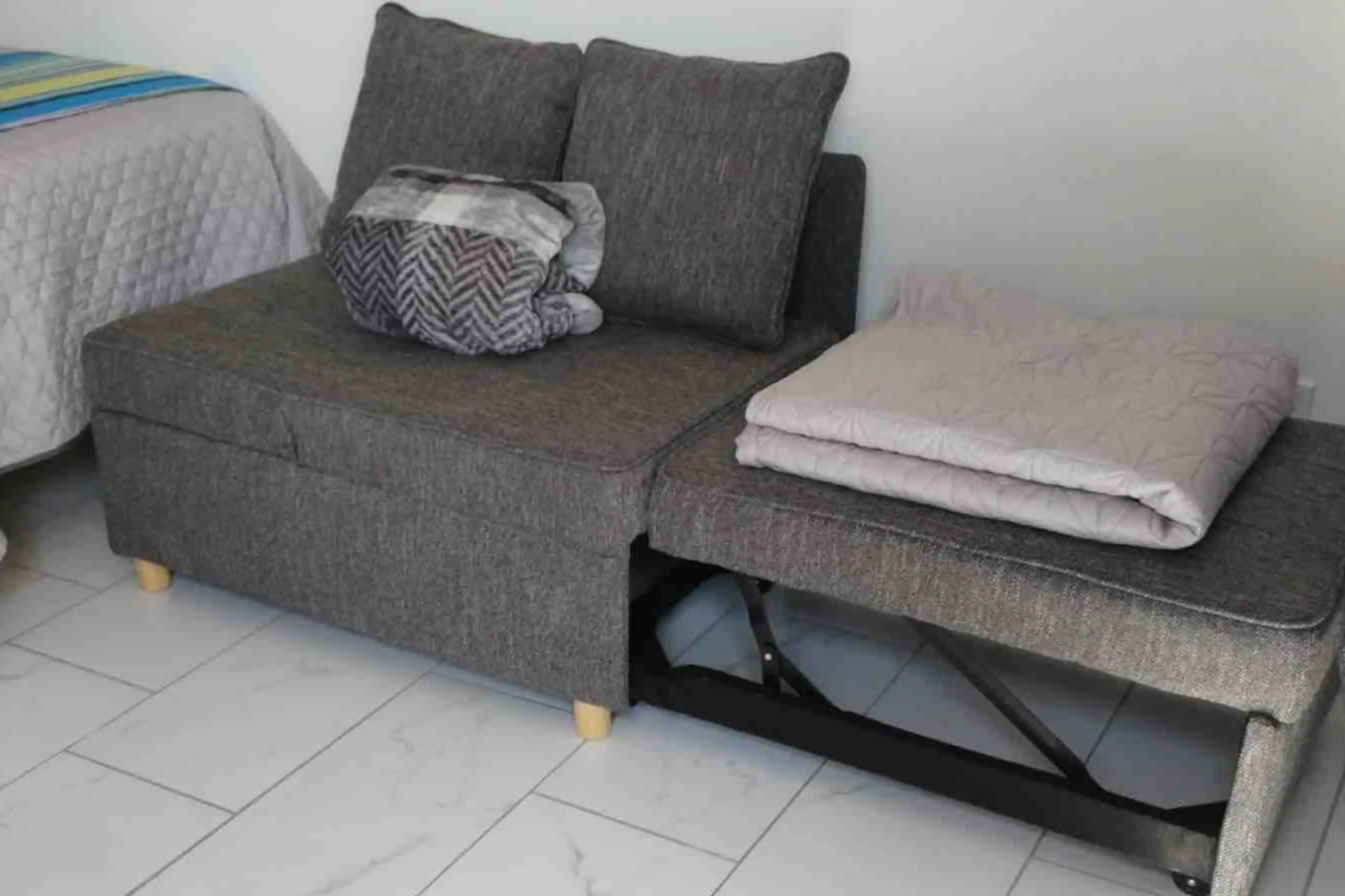 Negative: It’s just not suitable for 3 people:( very small, and it would be better to sleep on the floor than on that couch. 2 other beds are mediocre. The Neighborhood looks not so good as well. I hope the owners will fix the issue with the sleeping spots.
